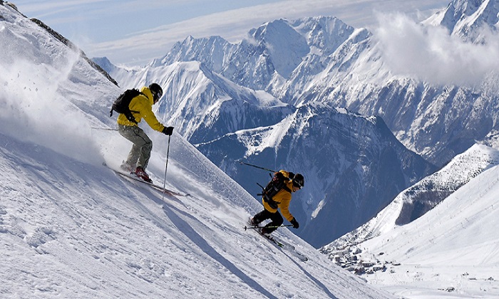 Skiing in Gulmarg - a wonderful combination of incredible powder skiingone of the world greatest adventure skiing experiences! Gulmarg issituated in the northern Kashmir at the western extremity of the Himalayas in a subsidiary range called the Pir Panjals. It is 52 Kmtsfrom Srinagar, the state capital. Due to its geographic locationGulmarg gets some of the heaviest snowfalls in the Himalayas and it hasearned the distinction of being the best ski resort in the Himalayas.Skiing was first introduced to Gulmarg by two British Army officers whoestablished the first ski club in 1927. The Gulmarg itself sits in gently undulating meadows high above the Kashmiri plateau at about 2,730m. Someof the best slopes in the country for beginners and intermediate skiersare available at Gulmarg. Skiing equipment is available on hire fromthe Ski-Shop. In winter Gulmarg natural slopes and inclines turninto the country premier skiing resort. Not all tourists who visitin winter come for skiing - some simply are there to watch the skiingor to enjoy a holiday in the snow. Many of these are infected with theexcitement of the skiers, and have donned their first pair of skiswithin a short while of their arrival. Among the multitudes ofslopes, there are a few which are serviced by ski lifts. Most of theskiing becomes centred on these slopes, which are specially suited tobeginners and intermediate level skiers, with ski runs ranging from 200m to 3kms, instructors are available for both levels. As in thesummer, when each individual sets his own pace for a holiday, so alsoin winter, skiing can be as adventurous as the holidaymaker can want.There are a number of slopes, not serviced by ski lifts, of varyinglengths and gradients. Each of these is quieter than theimmensely popular ones with skilifts. Advanced skiers often trek in thesnow for several hours to the very top of Apharwat peak, to make adescent lasting no more than 30 minutes. And now, with the operation ofthe Gulmarg Gondola Cable Car, it has become all the more convenientfor skiing enthusiasts, as they can gain a ski run of nearly 3 kms withthe help of this cable car which goes up to Kongdori.